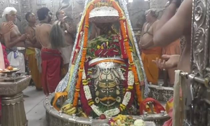 The 'Bhasma Aarti', a sacred ceremony, was performed on the occasion of the fourth Monday of the holy month of Sharavan at Mahakaleshwar...