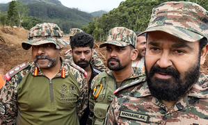 Actor Mohanlal who is a Lt Colonel in the 122 Territorial Army and is attached to the Kannur unit, on Saturday went around the worst-affected...