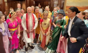 Prime Minister Narendra Modi on Tuesday interacted with members of the Russian Cultural troupe who performed Bharatnatyam and Garba during ...