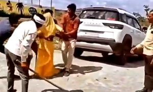 In a shocking video that has gone viral in Madhya Pradesh, a woman was seen being brutally assaulted by a group of men in the Dhar...