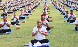Rajasthan Chief Minister Bhajanlal Sharma and Governor Kalraj Mishra performed Yoga at a state-level function at Sawai Mansingh Stadium ...