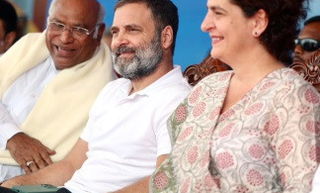 With polling underway in Telangana, Congress President Mallikarjun Kharge, Rahul Gandhi and Priyanka Gandhi...