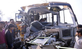 At least 12 people were killed when their vehicle travelling at high speed rammed...