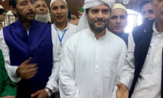 Srinagar: Congress vice president Rahul Gandhi visits the Hazratbal shrine in Srinagar, on Aug 28, 2015. (Photo: IANS)...