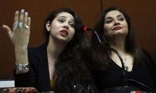 Actresses Salma Agha and Shasha Agha during a press conference regarding culling of street dogs in Kerala; in Mumbai on Aug 7, 2015. ...