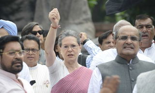The Congress, led by its top leaders, protested against the suspension of 25 of its Lok Sabha MPs for the second day on Wednesday even as six other political parties joined in support....