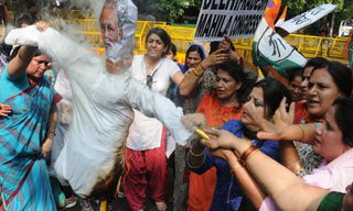 The Delhi Pradesh Congress Committee's (DPCC) women wing on Tuesday burnt Prime Minister Narendra Modi's effigy outside the BJP headquarters to protest the Congress MPs' suspension from parliament....