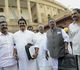 Congress members from both houses, led by party president Sonia Gandhi and vice president Rahul Gandhi wore black bands, on Tuesday to protest the suspension of 25 MPs of the party by Lok Sabha Speaker Sumitra Mahajan....