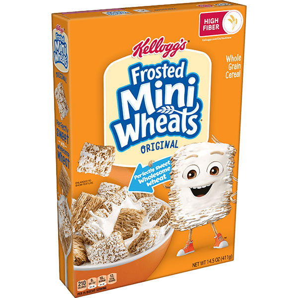 Kellogg’s Frosted Mini-Wheats, a staple in breakfast cereals which claims “perfect balance of high fiber & great taste”, debuted in 1970. It is reportedly currently available in Blueberry, Chocolate, Cinnamon Roll, Cocoa, Golden Honey, Original, Original Little Bites, Pumpkin Pie, Strawberry formats. It is sometimes self-described as “a work of art”.