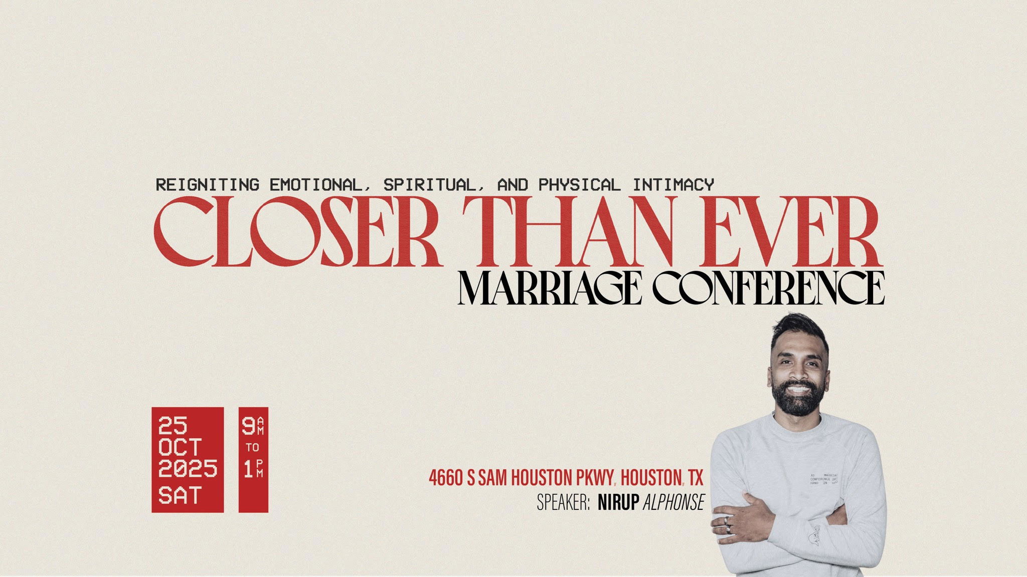 Couples across the Houston area are preparing to attend the Closer Than Ever Marriage Conference, a special event dedicated to reigniting emotional, spiritual, and physical intimacy in marriage. The conference will be held on Saturday, October 25, 2025, from 9:00 a.m. to 1:00 p.m. at 4660 S Sam Houston Parkway, Houston, TX.